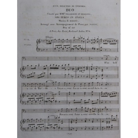 ROSSINI G. Il Turco in Italia No 11 Chant Piano ca1830