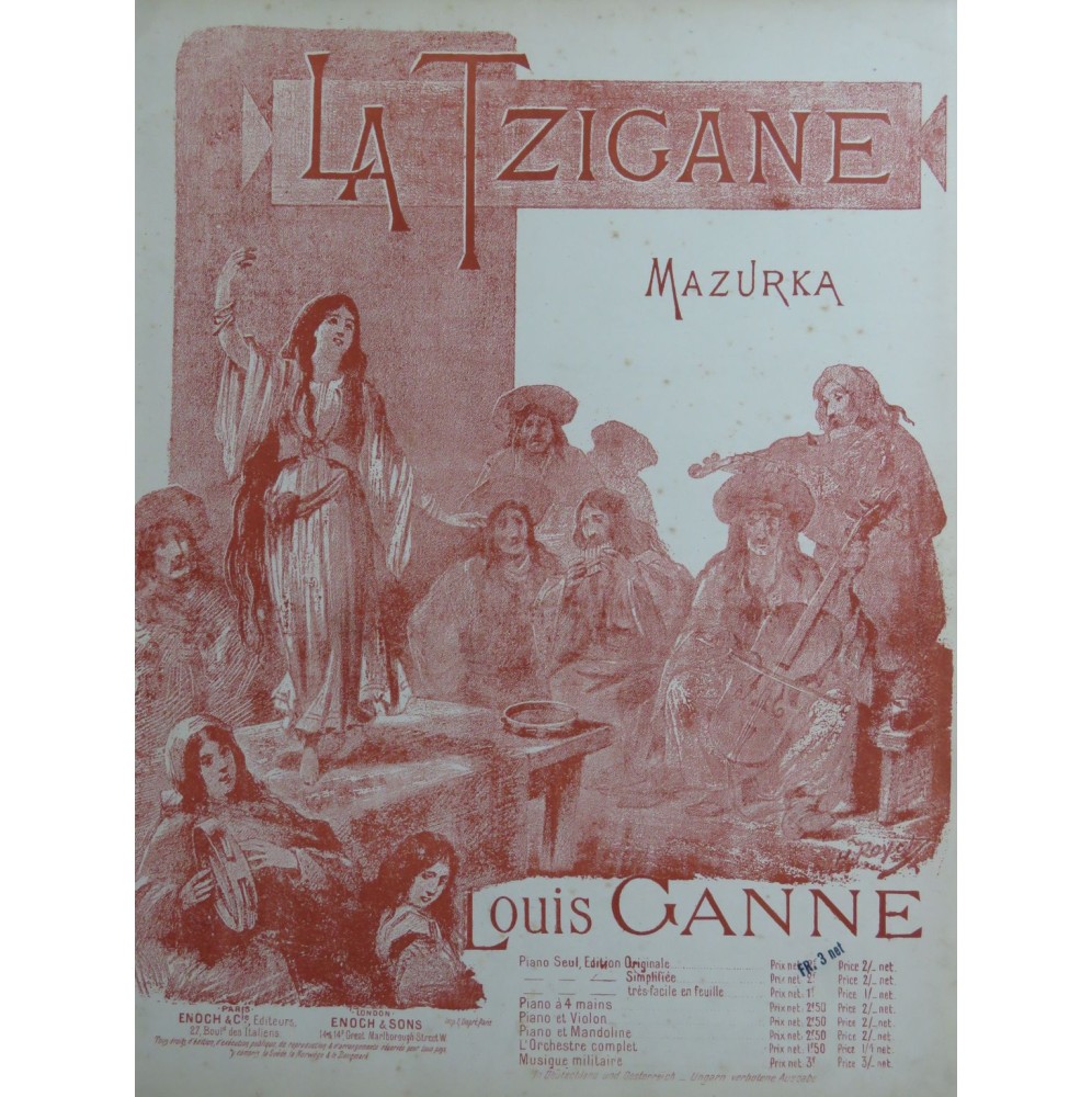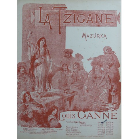La TziganeMazurka HongroisePour PianoPar Louis GANNE A Monsieur F. DesgrangesParis, Enoch & Cie Editeurs, E. F. & C. 1829ca18917 pages33 x 26 cmTrès bon étatPartition illustrée057785