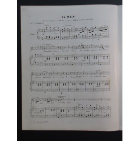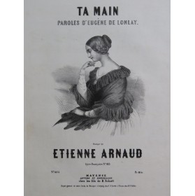 Ta MainPour Chant et PianoParoles d'Eugène de LonlayMusique de Étienne ARNAUDA Mme E. SabatierMayence, chez les fils de B. Schott, 8575ca18453 pages32 x 25 cmParfait étatPartition illustrée 058265