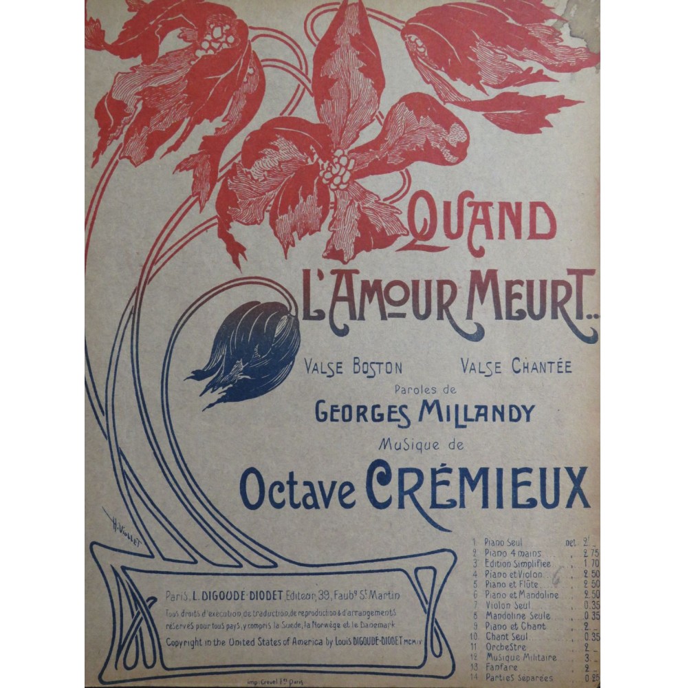 CRÉMIEUX Octave Quand l'Amour Meurt Piano 1904