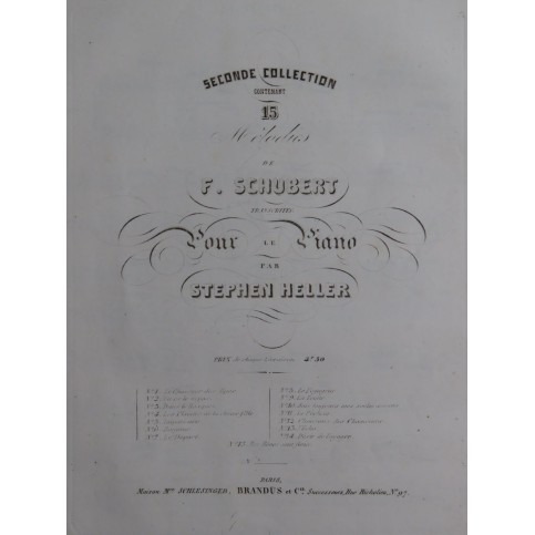 La Truitede Franz Schuberttranscription pour Pianopar Stephen HellerParis, Brandus et Cie M. S. 3386XIX siècle ca18485 pages33.9 x 25.8 cmTrès bon état058069