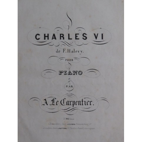 Charles VIde F. Halévypour Pianopar Adolphe Le CarpentierA Bruxelles, chez J. E. Libau No 14 4e AnnéeXIXe siècle 7 pages33.0 x 25.8 cmTrès bon état058071