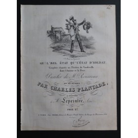 PLANTADE Charles Ah ! L'Bel État Qu'L'État D'Soldat Chant Piano ca1830